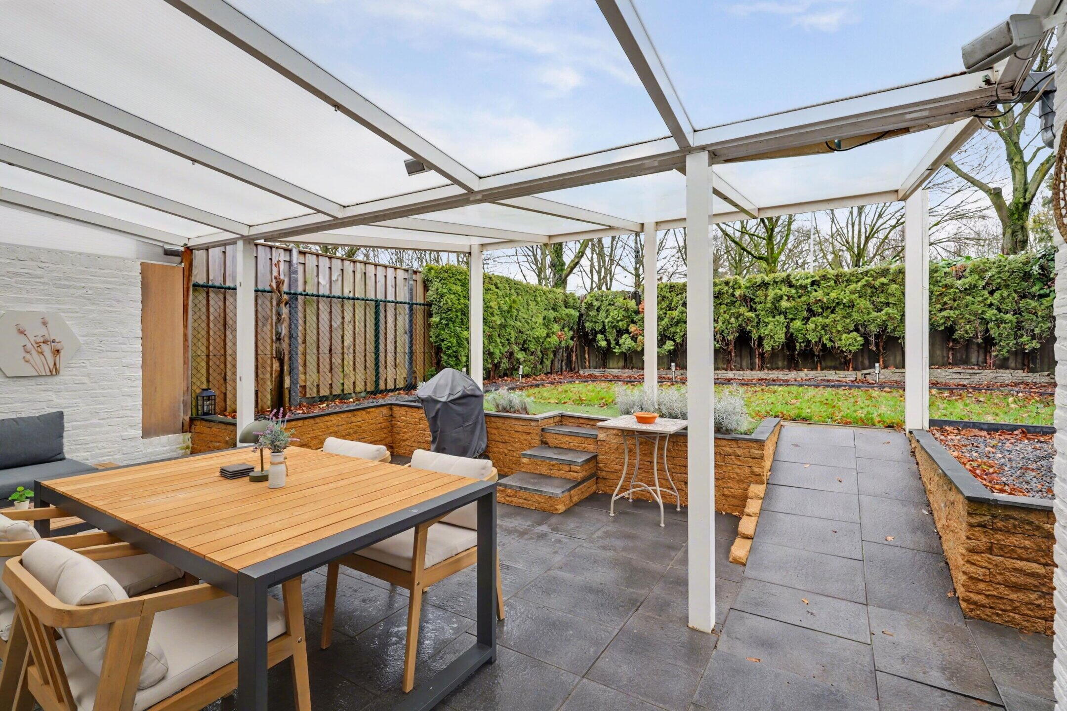De achtertuin is gunstig gelegen op het zuiden, waardoor u hier optimaal van de zon kunt genieten. Een fijne plek om te ontspannen of gezellig buiten te zitten.