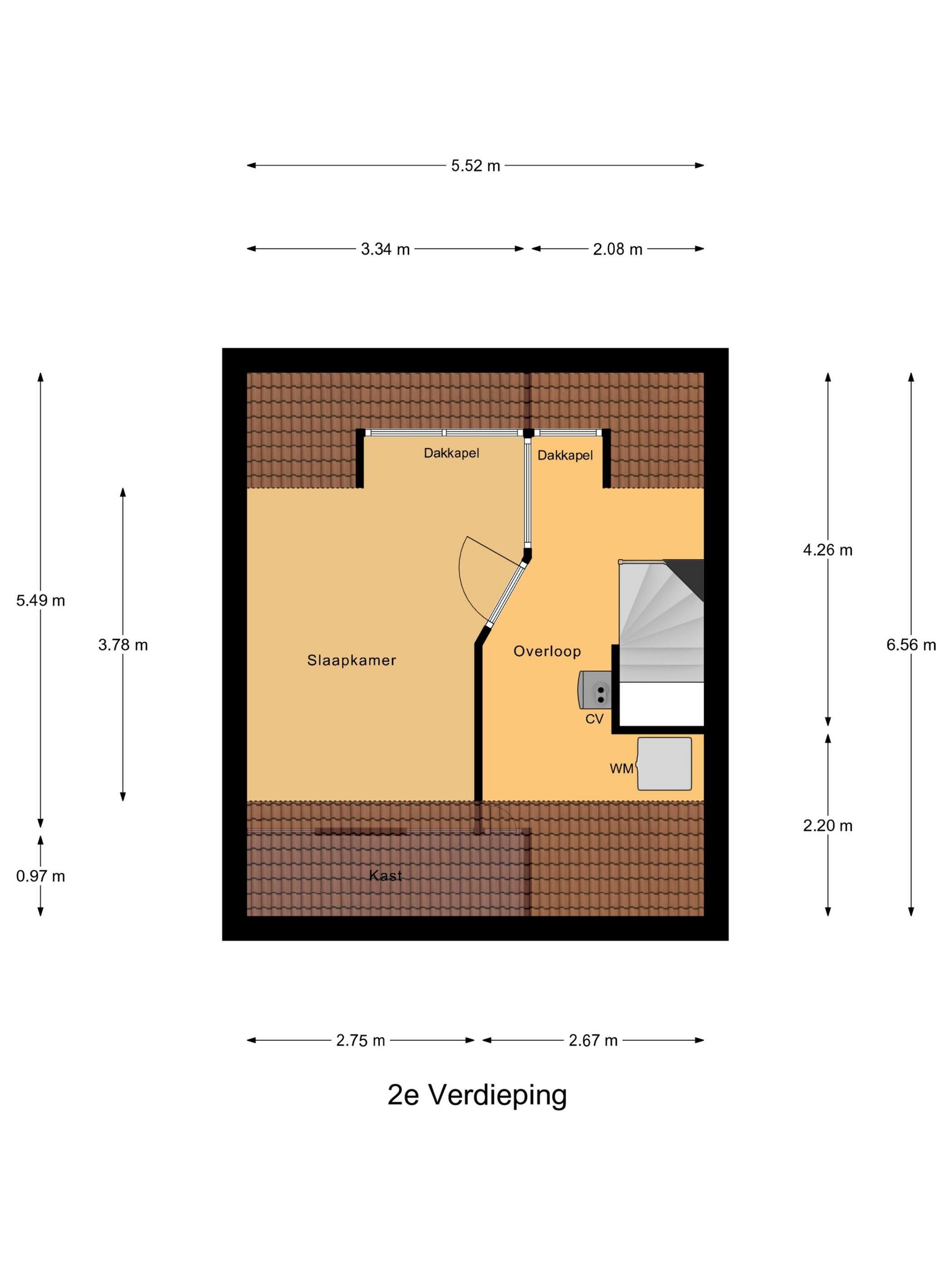 De tweede verdieping is ingericht als zolderverdieping en biedt: