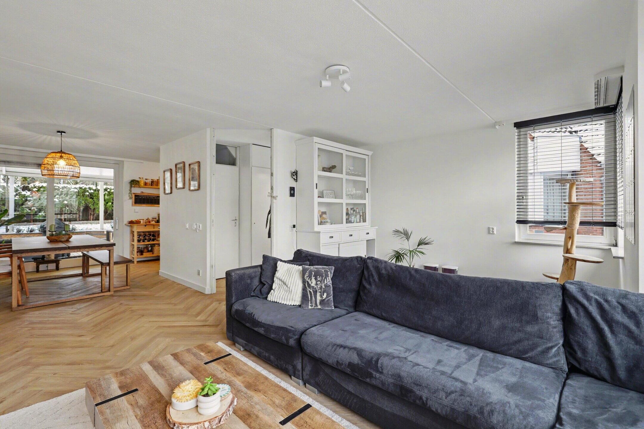 Via de entree met meterkast komt u in de hal met toiletruimte, voorzien van een toilet en fontein. Vanuit hier bereikt u de ruime en lichte woonkamer. De woonkamer biedt voldoende plaats voor een zit- en eethoek en staat in directe verbinding met de achtertuin via de schuifpui.
